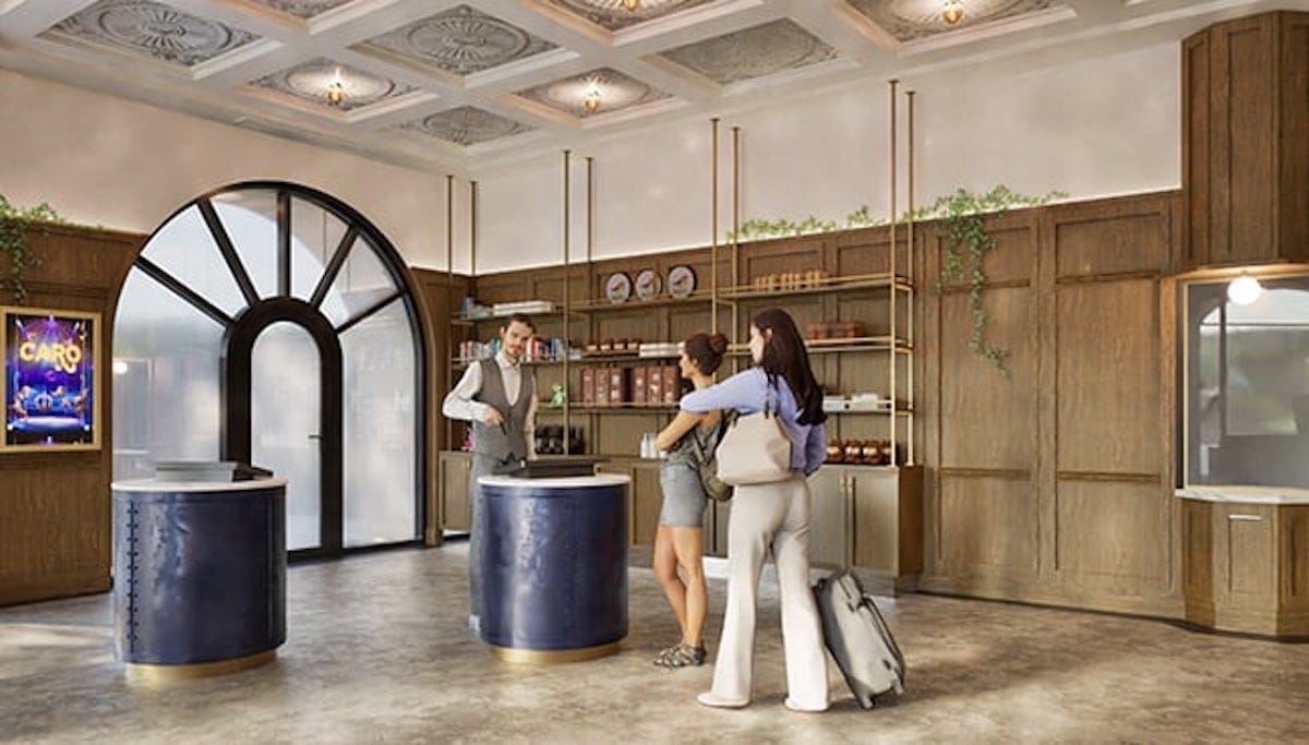 The guest entrance will be moved to the southwest corner of the hotel, where grandiose doors will reveal opulent display cabinets filled with Efteling souvenirs.