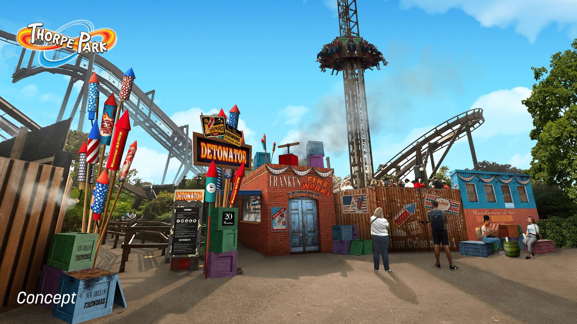 In a significant transformation, Thorpe Park Resort is set to launch Big Easy Boulevard in Spring 2024, replacing the recently closed Angry Birds Land. This vibrant new area, inspired by the lively spirit of New Orleans, was officially unveiled today via Thorpe Parks socials through captivating concept art and renderings.